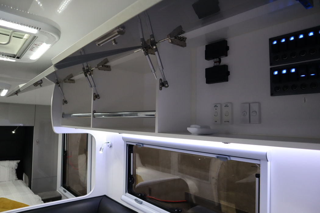 Water: 2 x 95ltr water tanks, 1 x 95ltr grey water tank